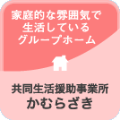 共同生活援助事業所「かむらざき」は知的障害のある方が地域の中で家庭的な雰囲気の下、共同生活を送るためのグループホーム事業です。