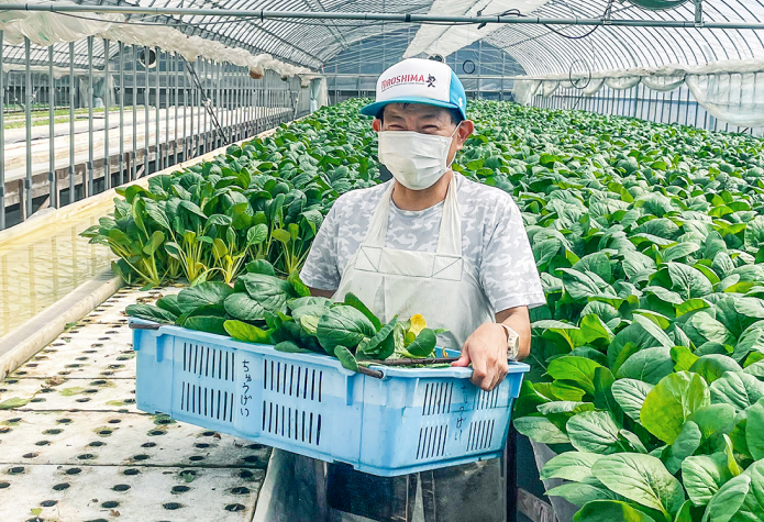 葉物野菜(小松菜、レタス、水菜、ネギ)などを水耕栽培しているほか、玉ねぎやさつまいもなどを露地栽培しています。収穫した野菜は地元商店やスーパーの店頭に並ぶほか、学校給食にも使われています。